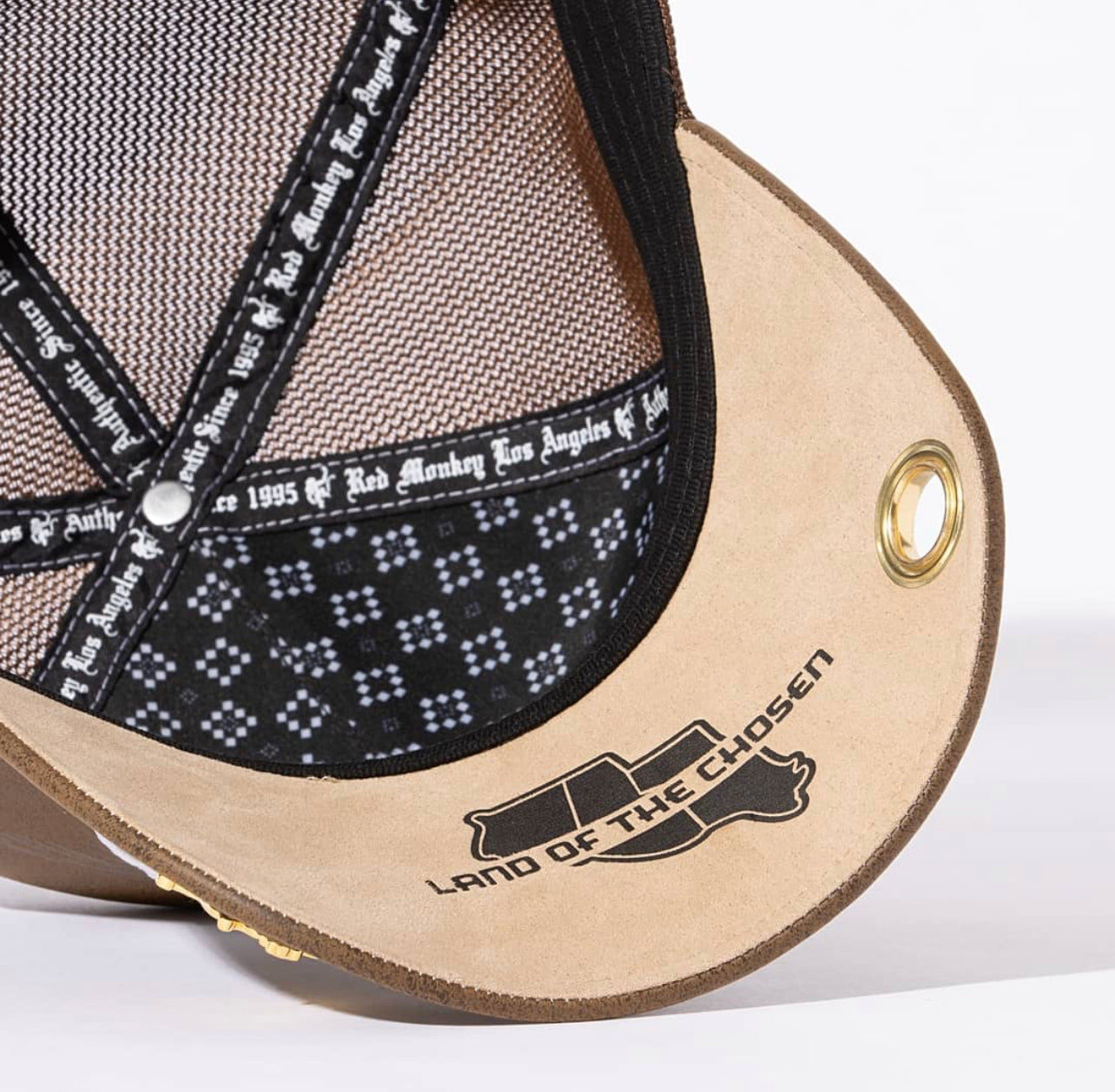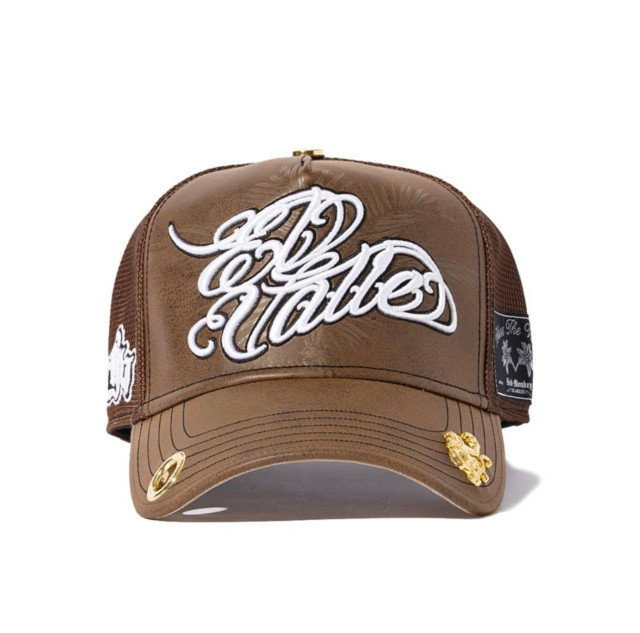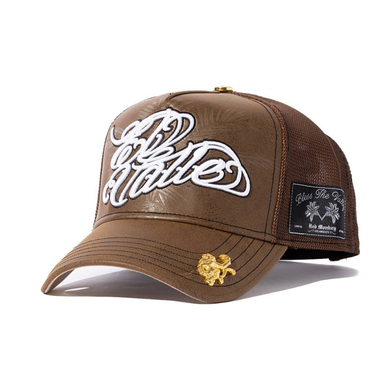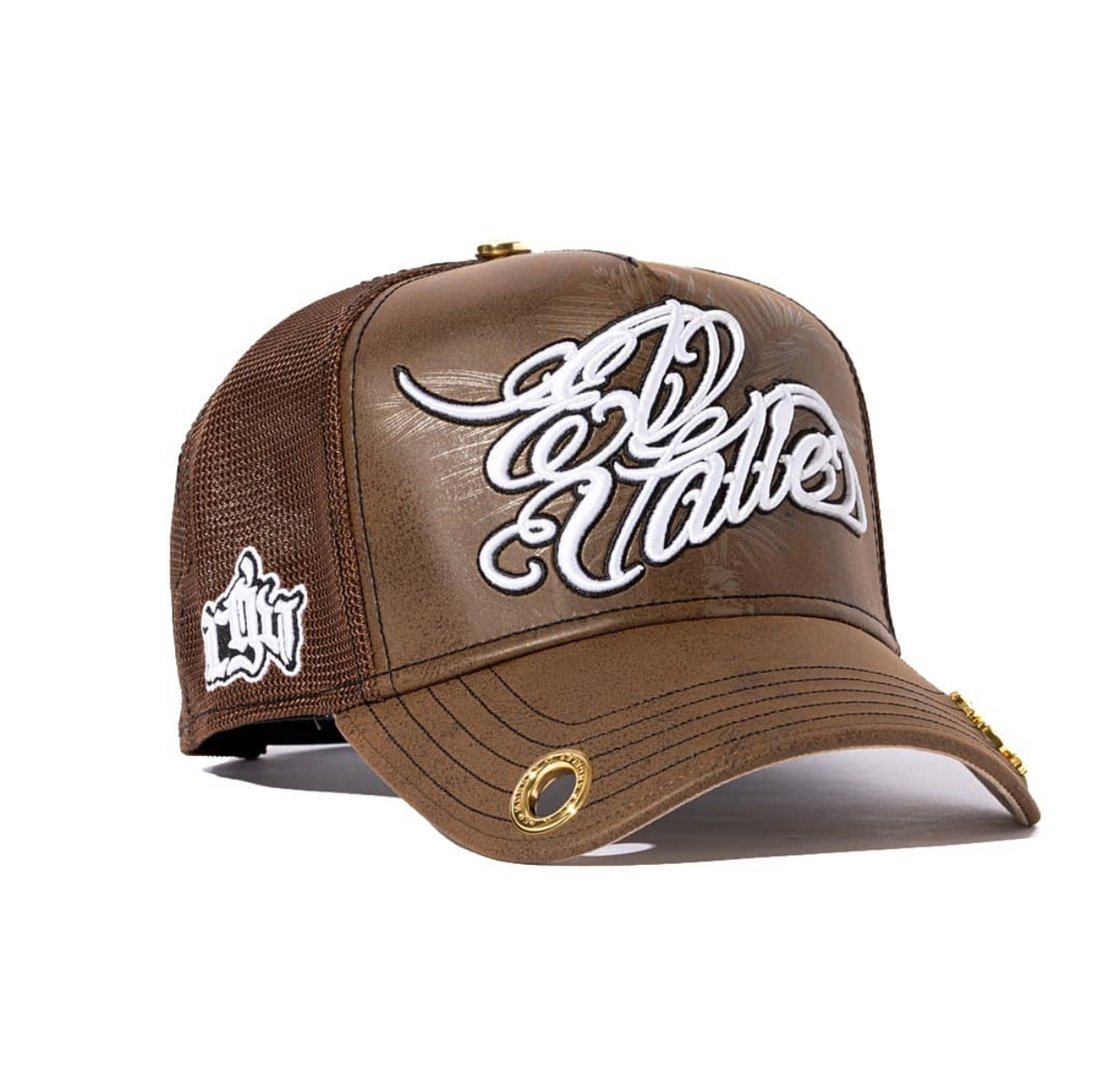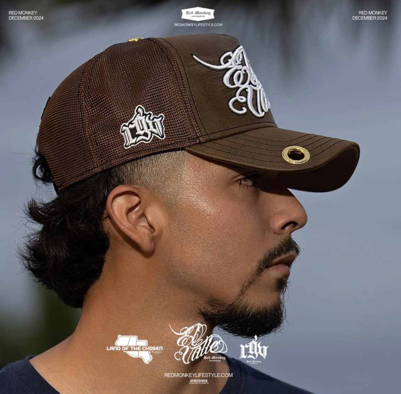 El Valle '24 Land Of The Chosen is a stunning look. A grained brown texture showcases a 3D embroidery of El Valle with a valley palm tree waxed on in the background. A special RGV mark is woven on.