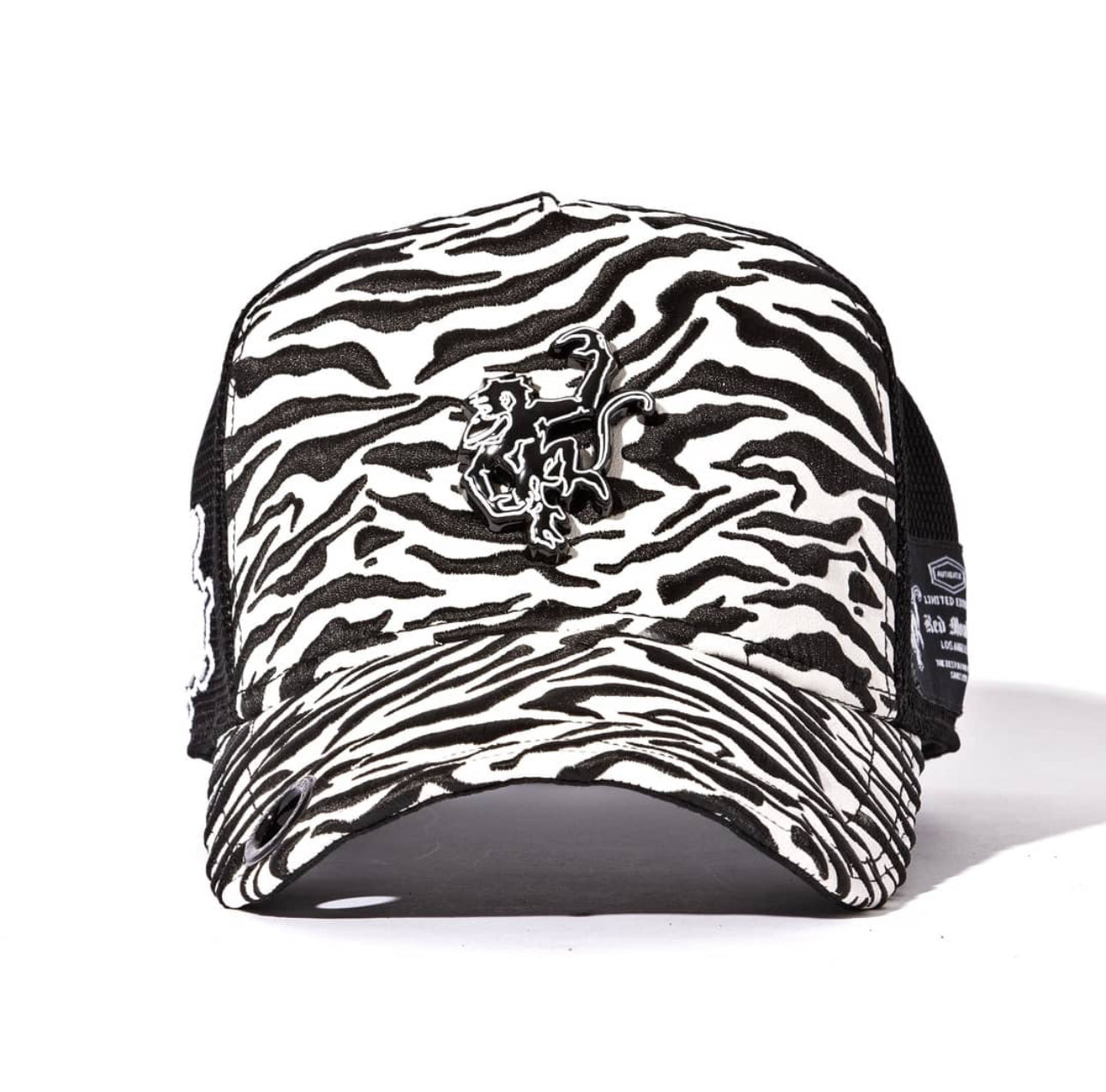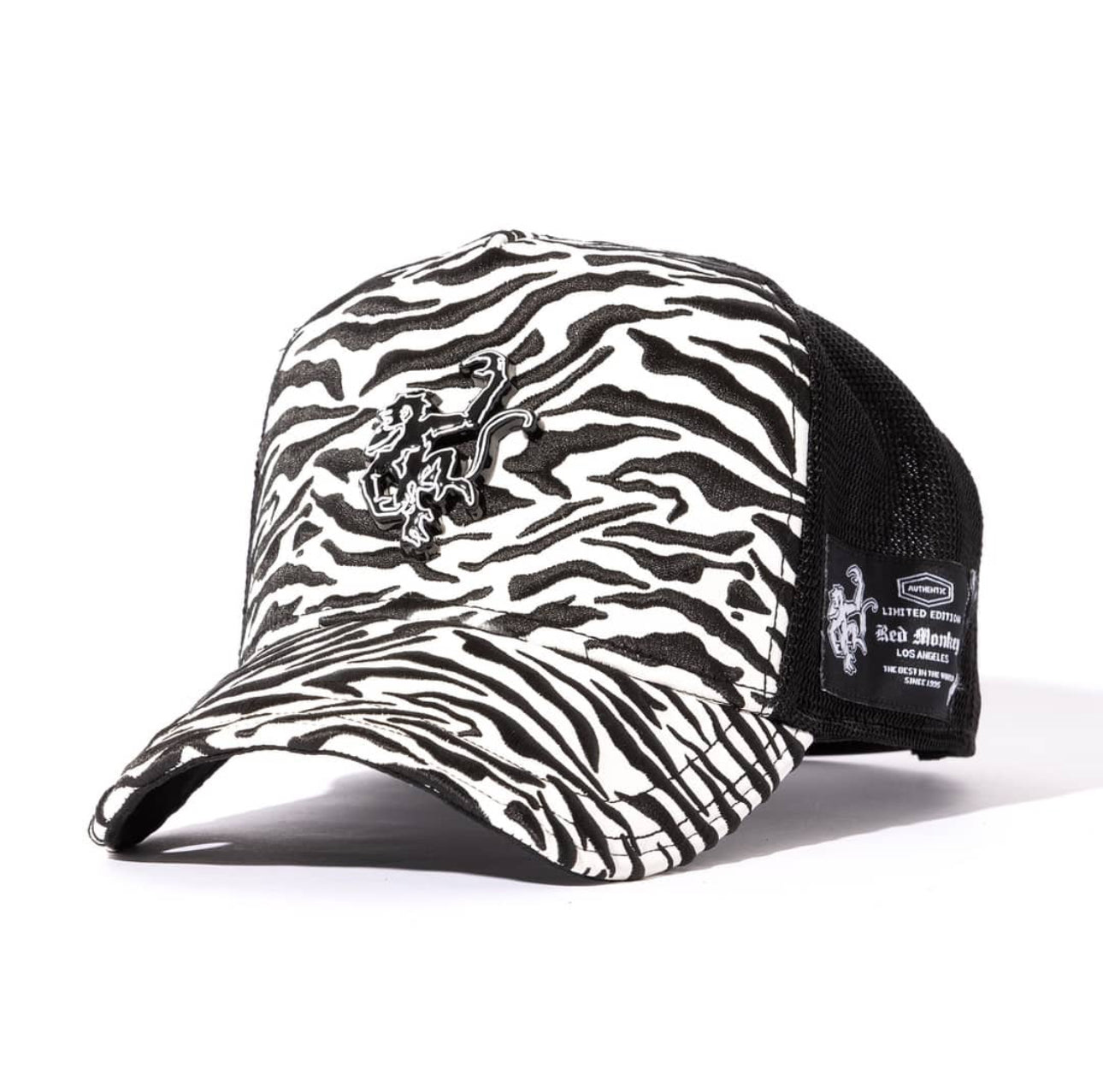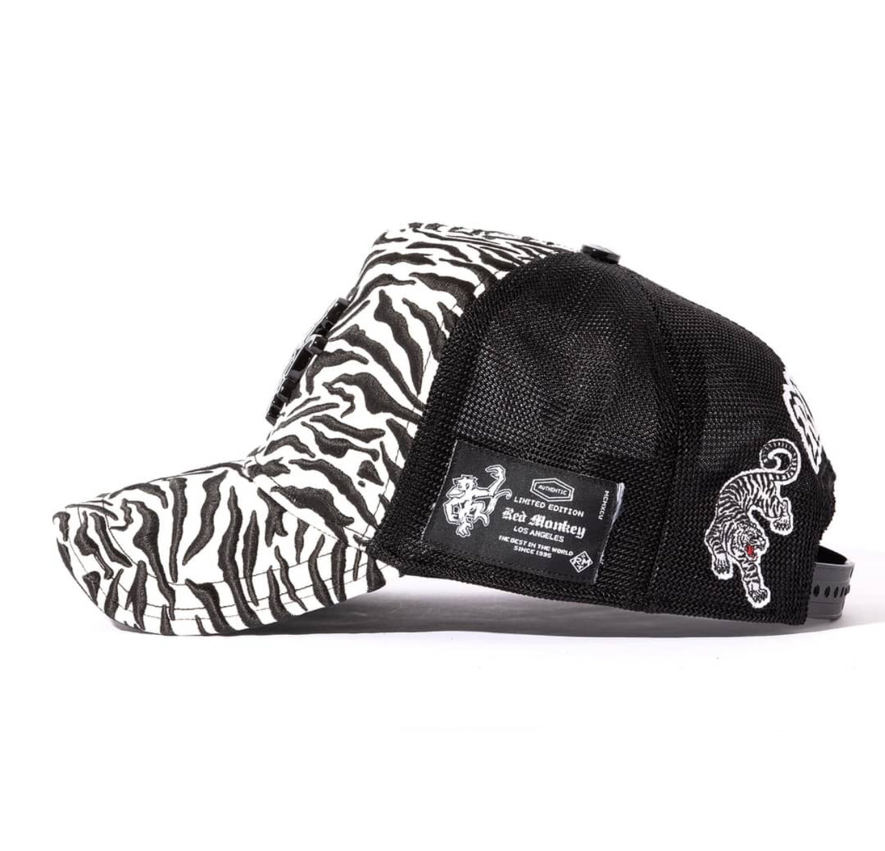 A classic tiger pattern is embroidered on a white grained leather crown and visor for an elevated look. Back of the hat embroidery lets everyone know you rule the scene. The Red Monkey 3D logo emblem is the signature of the Rich Series.