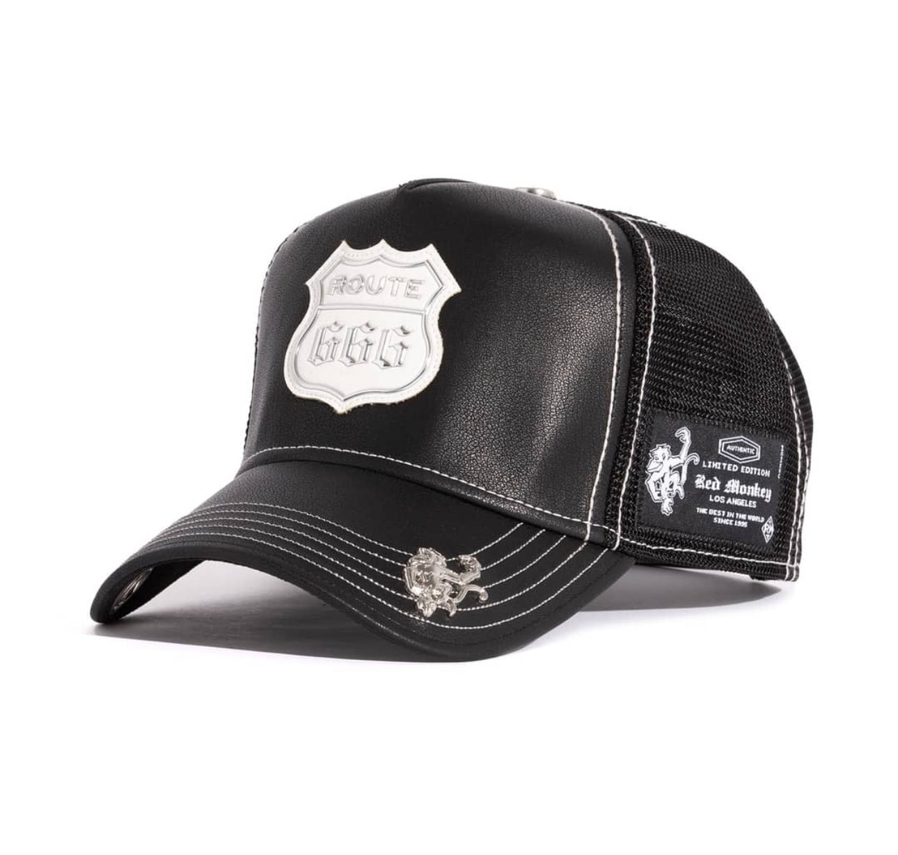 Red Monkey Route 666 owns the road with an uber clean design with an edge to it. A fine grained leather crown & visor that is soft to the touch is offset with double stitch seams and chrome plated hardware that showcase the RED MONKEY ROUTE 666 emblem. The 18 wheeler community is honored with a special side woven patch.